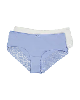 Este pack consta de dos culottes para mujer en los colores azul y blanco. El tejido está compuesto principalmente de algodón con una pequeña cantidad de elastano, por lo que los culottes resultan suaves al tacto y ofrecen una ligera elasticidad. Acabados con encaje en los laterales y en la parte trasera, estos culottes tienen un toque femenino y se adaptan perfectamente debajo de tu ropa en el día a día.