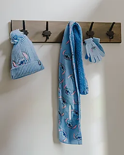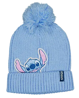 Este gorro azul tiene un pompón en la parte superior y un borde doblado. En la parte delantera hay una impresión del personaje de dibujos animados Stitch. En el borde hay una pequeña etiqueta con el texto 'Stitch'. El gorro mantiene tu cabeza caliente durante el clima frío.