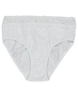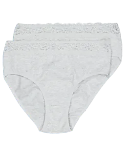 Este culotte Jane para mujer es de color gris y está confeccionado con un tejido suave y liso. La cinturilla ancha y elástica cuenta con un delicado borde de encaje y se ajusta cómodamente sin apretar. Gracias a la mezcla de algodón con un toque de elastano, el tejido ofrece una ligera elasticidad, lo que garantiza un ajuste cómodo. Este pack incluye dos unidades.
