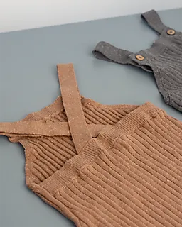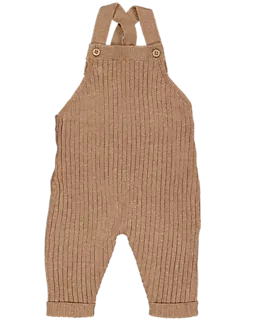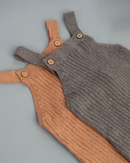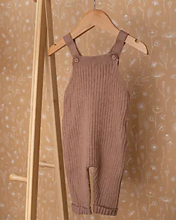 Este mono de color marrón para bebé tiene una textura acanalada y está hecho con un 99 % de algodón y un 1 % de poliéster. Gracias a los botones de madera en los tirantes, el mono se pone y se quita con facilidad. Los bajos con vuelta le dan un acabado cuidado. El tejido de algodón resulta suave y agradable en contacto con la piel.