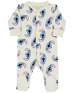 Este pijama beige para bebé está hecho de una suave y flexible single jersey y tiene un estampado completo con figuras azules y rosas. Las mangas largas y las piernas mantienen abrigado al bebé mientras duerme. El cierre en la parte delantera hace que poner y quitar el pijama sea fácil. Así, tu bebé está cómodo y cambiarlo es rápido y sencillo.