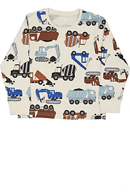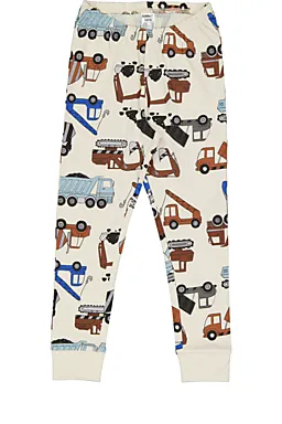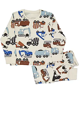 Este pijama para niño tiene un cuello redondo y mangas largas. El tejido es 100% algodón, por lo que es suave y cómodo para dormir. El conjunto incluye una camiseta y un pantalón largo con un estampado de vehículos en marrón, azul, negro y gris. Gracias al punto single jersey, te puedes mover con facilidad cuando estás tumbado o jugando.