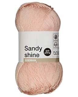 Este hilo de punto Sandy Shine es de un color rosa suave y viene en ovillos de 100 gramos. El ovillo tiene una longitud de 340 metros, por lo que tendrás hilo de sobra para trabajar en todo tipo de proyectos. Se recomienda usar una aguja de ganchillo de 1 a 3 mm o agujas de punto de 2,5 a 3,5 mm de grosor. Para una muestra de 10 x 10 cm necesitarás unos 26 puntos y 36 hileras.