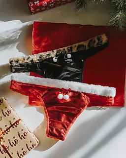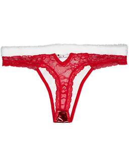 Este tanga rojo de inspiración navideña está confeccionado con un tejido brillante y acabado con un ribete blanco en la parte superior. En la parte delantera hay un pequeño lazo decorativo. Gracias a la combinación de poliéster y elastán, el tejido combina suavidad y elasticidad para adaptarse cómodamente al cuerpo.