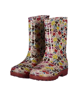 Ces bottes de pluie ont un imprimé fleuri dans les couleurs rouge, jaune et noir, ce qui les rend faciles à remarquer quand les enfants jouent dehors. La semelle rouge solide offre une bonne adhérence sur les surfaces mouillées, pour que votre enfant marche plus stable quand il pleut. La tige haute protège contre les éclaboussures, ce qui aide à garder les pieds au sec plus longtemps.