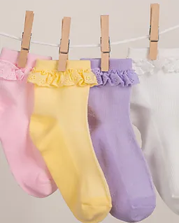 Cet ensemble de trois chaussettes pour fille est proposé en lilas, jaune et rose clair. Elles sont en coton avec du polyester et un peu d’élasthanne, ce qui les rend douces et légèrement extensibles. Le haut est fini avec un petit volant, pour qu’elles restent visibles au-dessus des chaussures. Le tissu souple permet qu’elles restent bien en place pendant la journée.