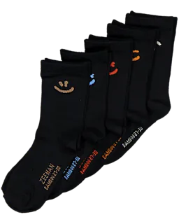 Ces chaussettes noires pour garçons et filles sont composées de 69 % de viscose de bambou, 29 % de polyester recyclé et 2 % d’élasthanne. Le tissu doux les rend confortables et elles conviennent pour tous les jours. Le détail de couleur discret à la cheville et sur le pied aide à distinguer facilement les chaussettes. Vous recevez un lot de 5 paires.
