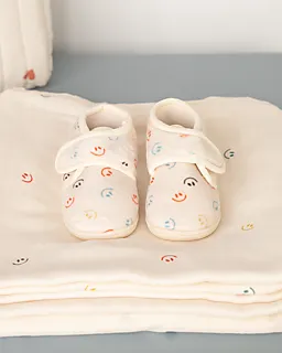 Ces chaussons pour bébé beiges sont faits dans une matière douce, pour garder les pieds de votre bébé bien confortables. Les petits visages souriants et colorés donnent aux chaussons un aspect ludique. Grâce à la fermeture pratique, ils s’enfilent facilement et restent bien en place quand votre bébé bouge. Le modèle léger permet à votre bébé de porter ces chaussons agréablement à la maison ou en déplacement.