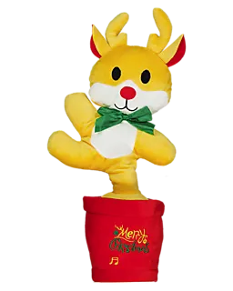 Cette décoration de Noël est un petit renne en matière douce avec le texte Merry Christmas. Sa fourrure jaune, son nœud vert et ses détails rouges lui donnent un aspect simple et joyeux. Le matériau léger et doux permet de poser facilement la figurine sur une armoire ou un rebord de fenêtre.