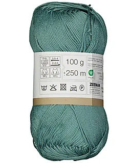 Ce fil à tricoter Ella vert est mercerisé et conditionné en pelotes de 100 grammes. Chaque pelote a une longueur de 250 mètres, vous offrant suffisamment de fil pour divers projets en crochet et tricot. Le fil convient pour des crochets de taille 2-2,5 mm et des aiguilles à tricoter de taille 3,5-4 mm. Un échantillon de 10 x 10 cm représente 21 mailles et 27 rangs.