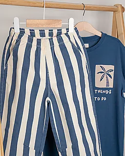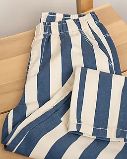 Ce pantalon beige à rayures verticales bleu foncé a une coupe ample, ce qui offre beaucoup de liberté de mouvement. Les jambes longues le rendent adapté à toutes les saisons. Grâce à la toile twill solide et respirante en 100 % coton, vous restez à l’aise, même si vous le portez plus longtemps.