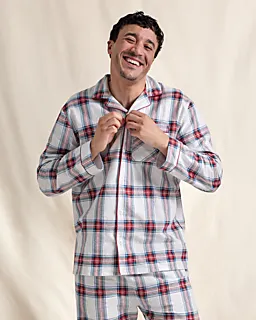 Ce pyjama en flanelle pour homme est fabriqué en 100 % coton. Le tissu est doux et vous tient bien chaud pendant la nuit. Le pyjama présente un motif à carreaux blanc, rouge, bleu et noir. Le haut possède des manches longues, une poche poitrine et se ferme à l’aide de boutons. Le pantalon est doté d’une taille élastiquée et de longues jambes droites. Confortable pour la maison, idéal pour les nuits froides.