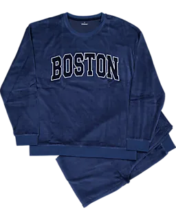 Ce pyjama bleu marine pour homme est fabriqué en velours doux, composé à 75 % de coton et 25 % de polyester. L’ensemble se compose d’un haut à manches longues et d’un pantalon à taille élastiquée. Un pyjama agréable pour se détendre ou dormir.
