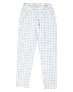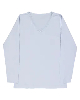 Ce pyjama pour femme est fabriqué en 100 % coton. Le tissu est doux et agréable sur la peau. Le haut a des manches longues et un col en V avec une finition soignée, ce qui le rend confortable à porter. Le pantalon long a un motif à carreaux bleu clair et blanc. Cela donne un look frais et calme lorsque vous dormez ou vous détendez.