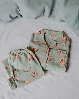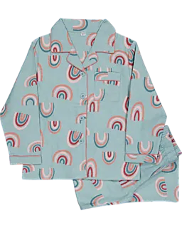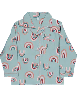 Ce pyjama pour fille est fabriqué en 100 % coton flanelle et est doux au toucher. Le pyjama se compose d’un haut à manches longues, d’un col et d’une fermeture boutonnée sur le devant. Le motif avec des arcs-en-ciel donne un aspect joyeux. Grâce au tissu souple et à la coupe confortable, ce pyjama est agréable à porter pour dormir.