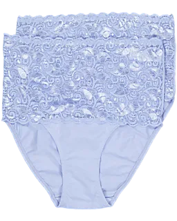 Cette culotte taille haute violette pour femme est ornée d’une large bande de dentelle fantaisie sur le haut. En coton travaillé d’un peu d’élasthanne, elle est douce et légèrement extensible. Grâce à sa taille haute, la culotte épouse agréablement les formes. Vous recevrez un lot de deux culottes, pour pouvoir facilement alterner.