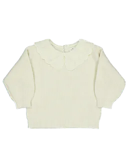 Ce pull pour bébé beige est tricoté et a des manches longues. Le col avec un bord ondulé donne un aspect ludique. Le tissu doux offre du confort et convient à la peau sensible des bébés. Grâce à son design simple, le pull se combine facilement avec d’autres vêtements. Idéal pour un usage quotidien, dans un style chaud et pratique.
