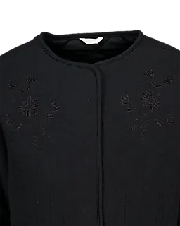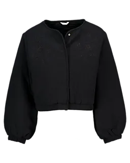 Cette veste noire pour fille est dotée d’un col rond et se ferme par boutons-pression. Le tissu léger rehaussé de subtils détails brodés sur le devant apporte une touche de fantaisie à la veste. Les manches longues à poignets élastiqués restent bien en place. Grâce à sa couleur, elle se marie facilement avec d’autres vêtements.