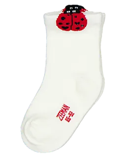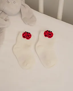 Ces chaussettes blanches pour bébé ont une coccinelle rouge à pois noirs en haut. Elles sont faites de 73 % de coton biologique, 25 % de polyamide et 2 % d’élasthanne. Cela les rend douces et légèrement extensibles. Elles sont agréables à porter et tiennent bien en place. Grâce à leur coupe confortable, vous pouvez les mettre tous les jours.