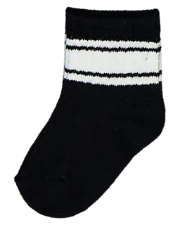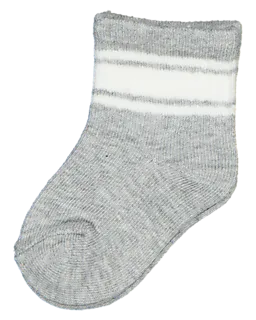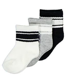 Cet ensemble se compose de trois paires de chaussettes pour bébé, en blanc, gris et noir, avec un motif à rayures. Les chaussettes sont faites dans une matière douce contenant du coton, du polyester recyclé, de l’élasthodiène et de l’élasthanne. Elles sont agréables à porter et légèrement extensibles. Les bords tiennent bien autour des chevilles, ce qui permet aux chaussettes de rester confortables pendant la journée.