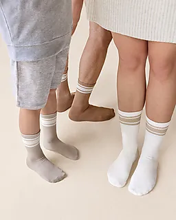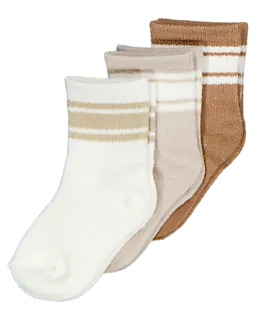 Ce lot de 3 chaussettes pour bébé est composé de blanc, beige et marron avec un motif rayé. Les chaussettes sont faites d’un mélange de coton et de polyester recyclé, ce qui les rend douces et respirantes. Grâce au tissu élastique, les chaussettes tiennent bien autour des petits pieds et restent bien en place pendant qu’elles sont portées.
