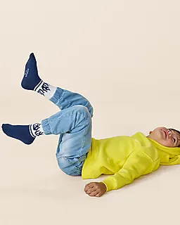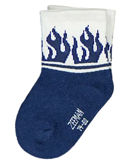 Cette chaussette bleue pour bébé a un motif de flammes en blanc et bleu sur le dessus. Grâce à l’utilisation de coton biologique, polyamide et élasthanne, la chaussette est douce et légèrement extensible, ce qui la rend confortable et elle reste bien en place. L’indication de la taille sous le pied permet de voir rapidement la taille qu’il vous faut.