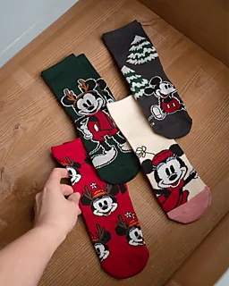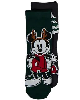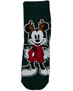 Ces chaussettes pour garçons et filles sont vertes et présentent un motif joyeux de Mickey Mouse avec des bois de renne. Le mélange de coton, de polyester et d'élasthanne donne un tissu doux qui est confortable et extensible. Grâce à l'élasthanne, les chaussettes restent bien en place. Vous pouvez les porter dans des baskets, des bottes ou d'autres chaussures.