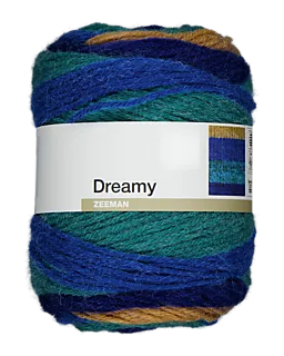 Cette laine Dreamy est bleue, verte et ocre jaune. La pelote pèse 150 grammes, ce qui vous donne assez de fil pour des projets plus grands. Un échantillon de 10 x 10 cm contient 22 mailles et 21 rangs. Le fil convient pour des aiguilles à tricoter de taille 5 à 6 et pour des crochets de taille 4 à 5, ce qui permet de réaliser facilement différents modèles.