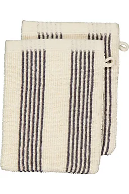 Ce lot de deux gants de toilette beiges présente un motif rayé simple de coloris gris foncé. Grâce à la boucle de suspension pratique, vous pouvez facilement suspendre le gant à un crochet dans la salle de bains après utilisation, pour le laisser sécher rapidement.