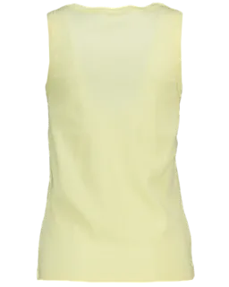 Ce haut jaune pour femme est sans manches et a un col rond. Le tissu est composé de coton avec un peu d’élasthanne, ce qui rend le haut doux et agréablement extensible. La structure côtelée permet au haut de bien épouser la forme du corps et de garder sa tenue. Grâce à la couleur unie, ce haut se combine facilement avec d’autres vêtements.