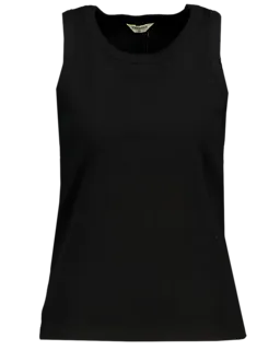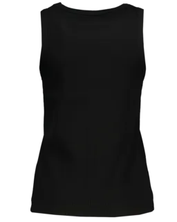 Ce haut noir pour femme est sans manches et a un col rond. Le tissu côtelé est composé de coton avec un peu d’élasthanne, ce qui rend le haut doux et légèrement extensible. Grâce à sa coupe simple, vous pouvez facilement le porter sous un gilet ou seul. Sa couleur unie permet de l’associer facilement avec d’autres vêtements.