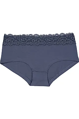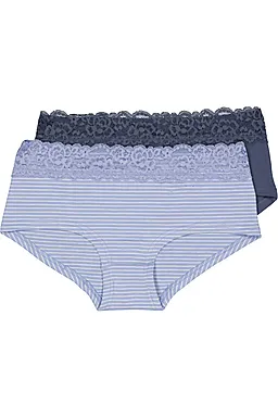 Ce lot de deux shortys Linda comprend un modèle couleur lavande à pois et un bleu foncé uni. Les deux shortys possèdent une large taille en dentelle douce, qui épouse agréablement votre corps. Grâce à leur composition en coton et élasthanne, ils sont souples et extensibles, vous permettant de bouger confortablement toute la journée.