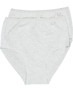 Ces culottes gris clair taille haute pour femme sont composées à 95 % de coton et 5 % d’élasthanne. Grâce à leur texture côtelée, elles sont douces et épousent bien les courbes du corps. La taille haute et la bande élastiquée les rendent confortables et assurent un ajustement parfait. Le haut de la bande élastiquée est agrémenté d’une finition en dentelle. Le lot contient deux culottes.