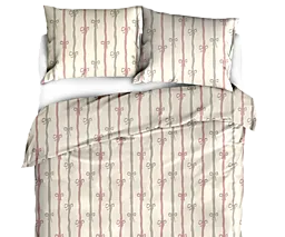 Cette parure de lit présente un fond blanc avec un motif de lignes verticales et de nœuds dans différentes couleurs. Elle comprend une housse de couette et deux taies d’oreiller assorties. Grâce à ses couleurs neutres, cette parure s’harmonise avec différents styles d’intérieur. Convient pour un lit deux personnes d’une longueur de 220 et d’une largeur de 240 centimètres.
