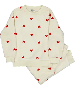 Ce twosie beige pour fille est composé d’un haut doux et d’un pantalon en polaire coral. Le tissu a un imprimé joyeux avec des cœurs rouges. Le haut a des manches longues et un col rond. Grâce au polyester 100 %, l’ensemble est confortable et tient chaud. Pratique à porter à la maison pour plus de confort pendant les moments de détente.