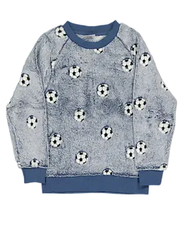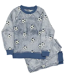 Ce twosie bleu pour garçon se compose d’un pull et d’un pantalon en coral fleece doux et confortable, 100 % polyester. L’ensemble a un motif de ballon de football et des bords côtelés. Idéal à porter à la maison pendant les jours plus froids. Le tissu tient votre enfant bien au chaud et se lave facilement. Cela rend cet ensemble pratique pour un usage quotidien.