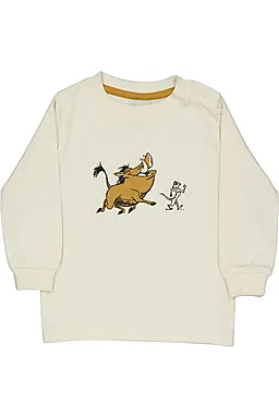 Ce pyjama pour bébé est composé d’un haut crème à manches longues et d’un pantalon ocre jaune. Sur le devant, on retrouve Timon et Pumbaa du Roi Lion de Disney. Le haut a un col rond et des poignets souples, ce qui le rend confortable. Le tissu doux permet d’enfiler facilement la tenue, pour que votre bébé puisse bouger librement pendant son sommeil.