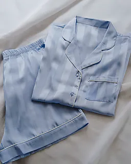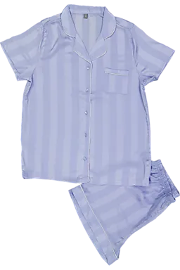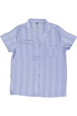 Ce shortama violet se compose d’une chemise à manches courtes en satin et d’un short. Le tissu a un motif de rayures discret et une légère brillance, ce qui le rend doux sur la peau. Grâce à la fermeture à boutons, la chemise s’enfile et s’enlève facilement. La coupe ample permet d’être bien à l’aise, pour pouvoir se détendre tranquillement.