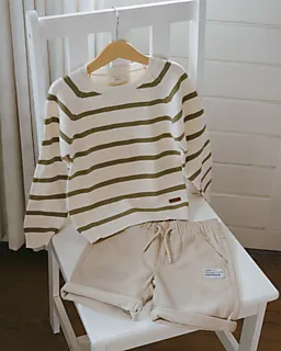 Ce pull pour garçon est en tissu beige avec des rayures vertes, ce qui donne un look calme et intemporel. L’encolure ronde et les bords côtelés s’ajustent bien, ce qui permet de bouger facilement. La texture tricotée est douce au toucher. Les manches longues apportent un peu plus de chaleur les jours plus frais. Il est donc agréable à porter à l’école ou à la maison.
