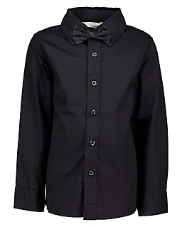 Ce t-shirt noir pour garçon a des manches longues et se ferme devant avec des boutons, ce qui le rend facile à enfiler. Le col a un nœud papillon noir assorti, ce qui donne un aspect soigné au t-shirt. Grâce à la couleur unie, vous pouvez facilement combiner ce t-shirt avec un pantalon habillé pour une occasion festive ou pour une journée d’école ordinaire.