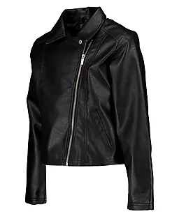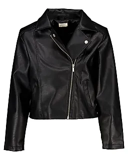 Cette veste noire pour fille est fabriquée dans un tissu robuste aspect cuir et dotée de manches longues. Elle se ferme facilement grâce à une fermeture zippée asymétrique sur le devant. Le col ouvert lui confère un style rock. Les poches latérales permettent d’emporter facilement de petits objets ou de garder les mains bien au chaud les jours plus frais.