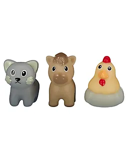 Cet ensemble d’animaux jouets comprend trois figurines : un chat gris, un cheval beige clair et une poule couleur crème avec une crête rouge. Grâce à leurs formes arrondies et à leurs visages joyeux, ces animaux sont sûrs et faciles à prendre en main pour les petites mains. Les différentes couleurs et animaux invitent à inventer des histoires et à jouer ensemble.