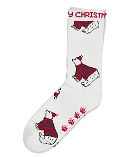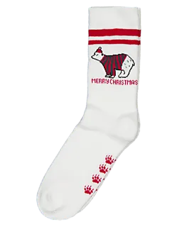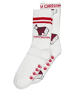 Ces chaussettes pour femme sont faites en coton, polyester et élasthanne. Cela leur donne une coupe douce et confortable qui est légèrement extensible. Grâce au tissu élastique, elles restent bien en place et conviennent pour des baskets ou des bottes. Les couleurs rouge et blanc, avec un motif animal et un message de Noël, leur donnent un aspect joyeux. Les rayures et empreintes de pattes rendent l’ensemble ludique.
