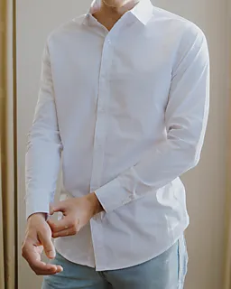 Cette chemise blanche pour homme est fabriquée dans un mélange solide de polyester et de coton, ce qui la rend agréable à porter et résistante. Le col classique et la fermeture à boutons devant permettent d’enfiler et d’enlever facilement la chemise. Grâce à la couleur unie, vous pouvez facilement l’associer avec un pantalon habillé ou un jean.