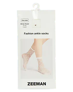 Cet ensemble comprend deux paires de socquettes transparentes avec un motif fleuri. Elles sont fabriquées dans un mélange de polyester, de polyamide et d’élasthanne, ce qui rend le tissu léger et souple. Les socquettes ont une structure fine de 20 deniers, ce qui leur donne un aspect fin et les rend agréables à porter.
