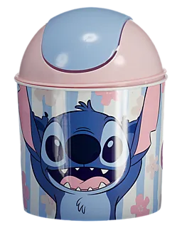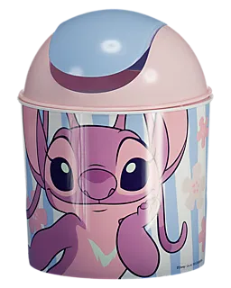 Cette poubelle bleue Stitch a un couvercle rose arrondi. Grâce à son format compact, elle trouve facilement sa place dans les petits espaces comme la salle de bain, la cuisine ou la chambre d’enfant. Le plastique solide et le couvercle simple permettent de jeter rapidement les déchets, tout en gardant la poubelle bien fermée.