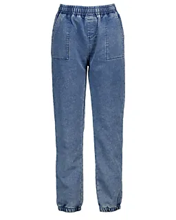 Ce pantalon bleu pour garçon est fabriqué en jog denim. Cela rend le pantalon doux et confortable à porter. La taille élastique et les bords côtelés en bas assurent un bon ajustement. Il y a deux poches pratiques à l’avant. Grâce à son design simple, ce pantalon se combine facilement et convient à différents moments, comme aller à l’école ou pour jouer.