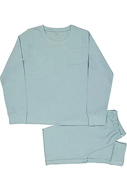 Ce pyjama bleu pour garçon est fabriqué dans un mélange doux de coton et de polyester en jersey simple souple. Il se compose d’un pantalon long et d’un haut à manches longues avec un col rond, pour rester bien au chaud pendant la nuit. Sa couleur unie donne un aspect calme, ce qui le rend agréable à porter pour une nuit de sommeil tranquille.