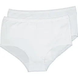 Cet ensemble se compose de deux slips blancs pour femme, en jersey simple doux en coton, polyester et élasthanne. Ils sont bien extensibles et agréables sur la peau. La ceinture élastique reste bien en place pour un port confortable. La finition lisse donne un aspect sobre et permet de porter les slips facilement sous un pantalon ou une jupe.