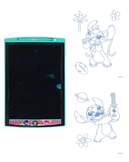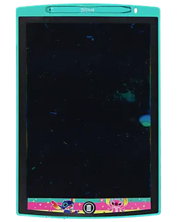 Tablette à dessin LCD avec un grand écran noir et un bord coloré. Pratique pour faire facilement des dessins ou prendre des notes avec le stylet fourni. Utile pour plusieurs utilisations, car vous n’avez pas besoin de papier. Grâce à son poids léger et à ses détails multicolores, vous pouvez emporter cette tablette partout avec vous. Fonctionne avec une pile au lithium.